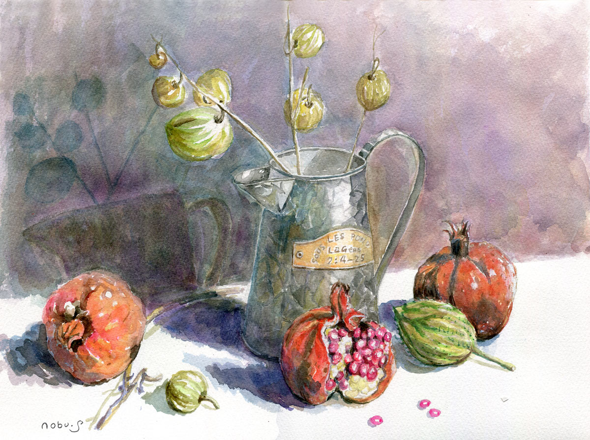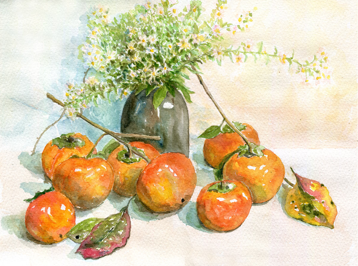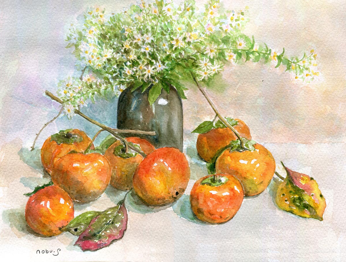 今日はこれから水彩教室なのですが、仕事の現場に行かなくちゃいけないのでが前回の作品を見て貰って今回のモチーフの写真を撮って帰る事に/ _ ;でもそれだけでも教えて貰えるので行って来ます^_^; 隣の畑のカリンが台風で沢山落ちているので朝拾って描きました。紙が薄くてしっか塗るとしわしわになるの薄塗りです(^^;;ではまた( ^_^)/~~~ [花梨と柿]水彩画
