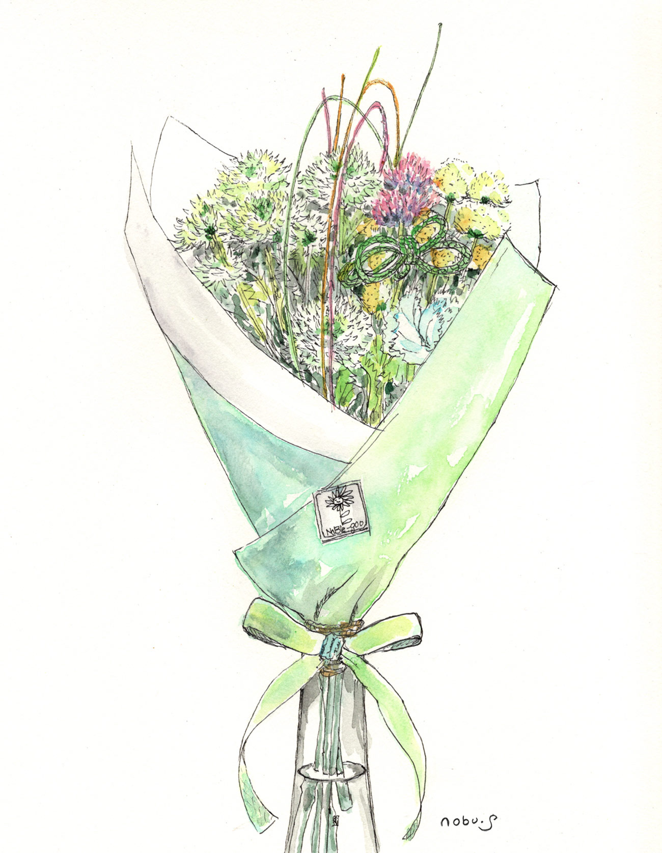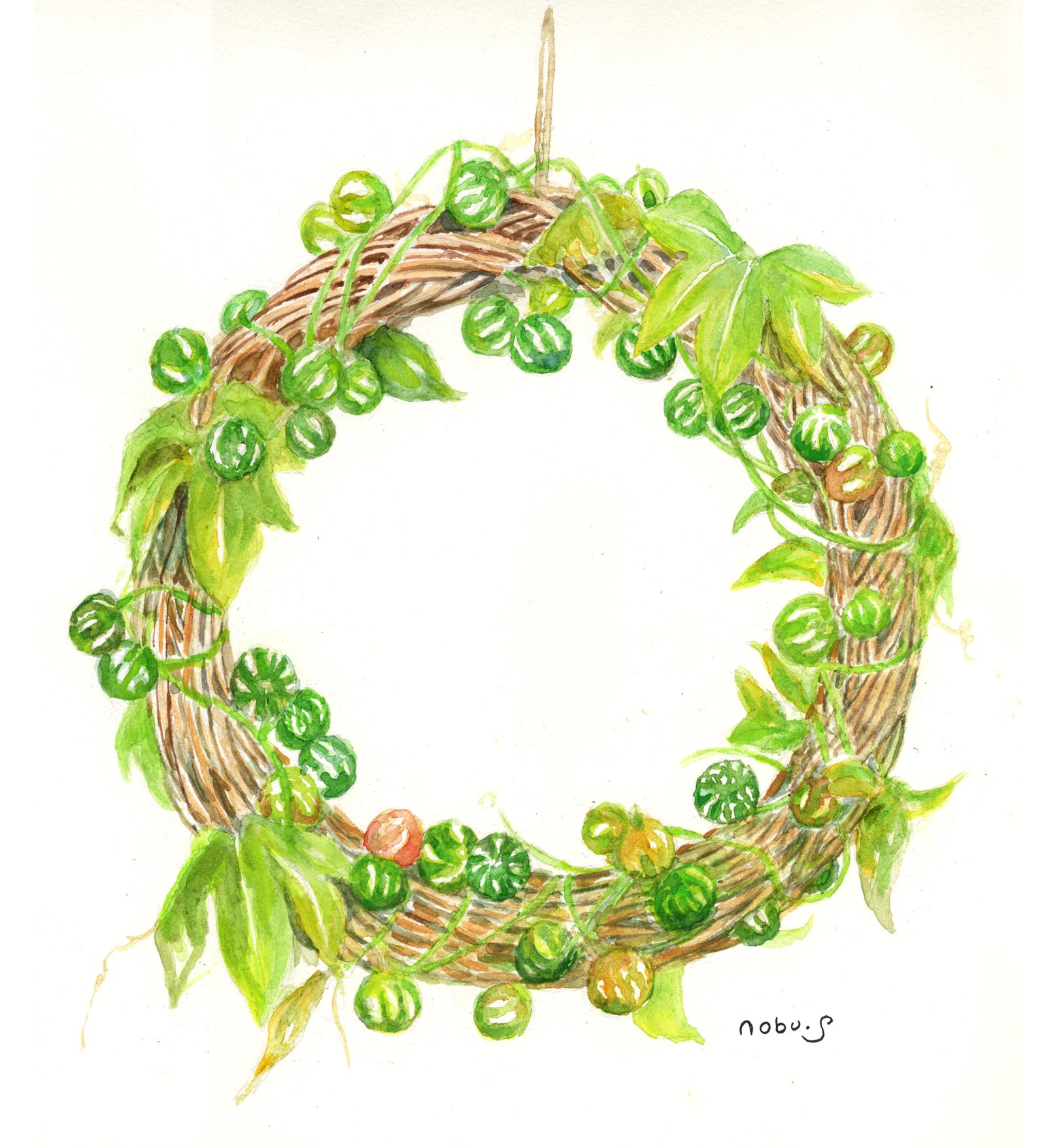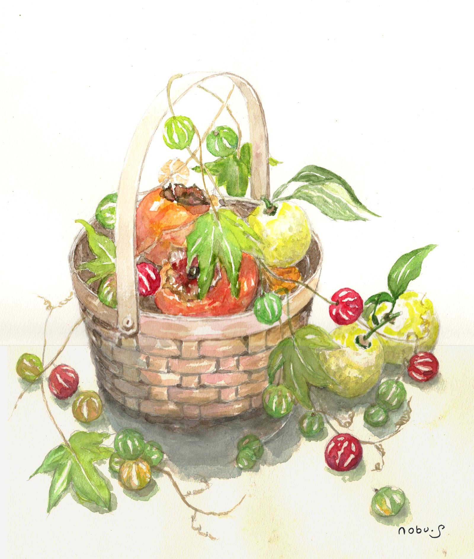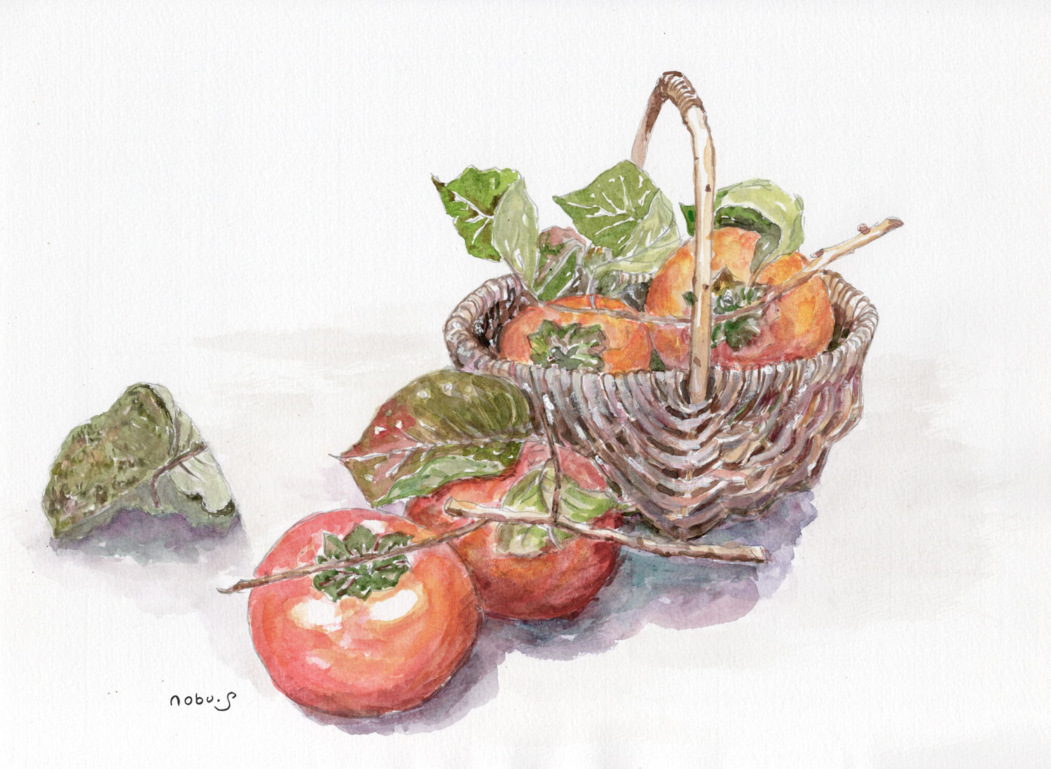 柿と籠 [水彩画] |
