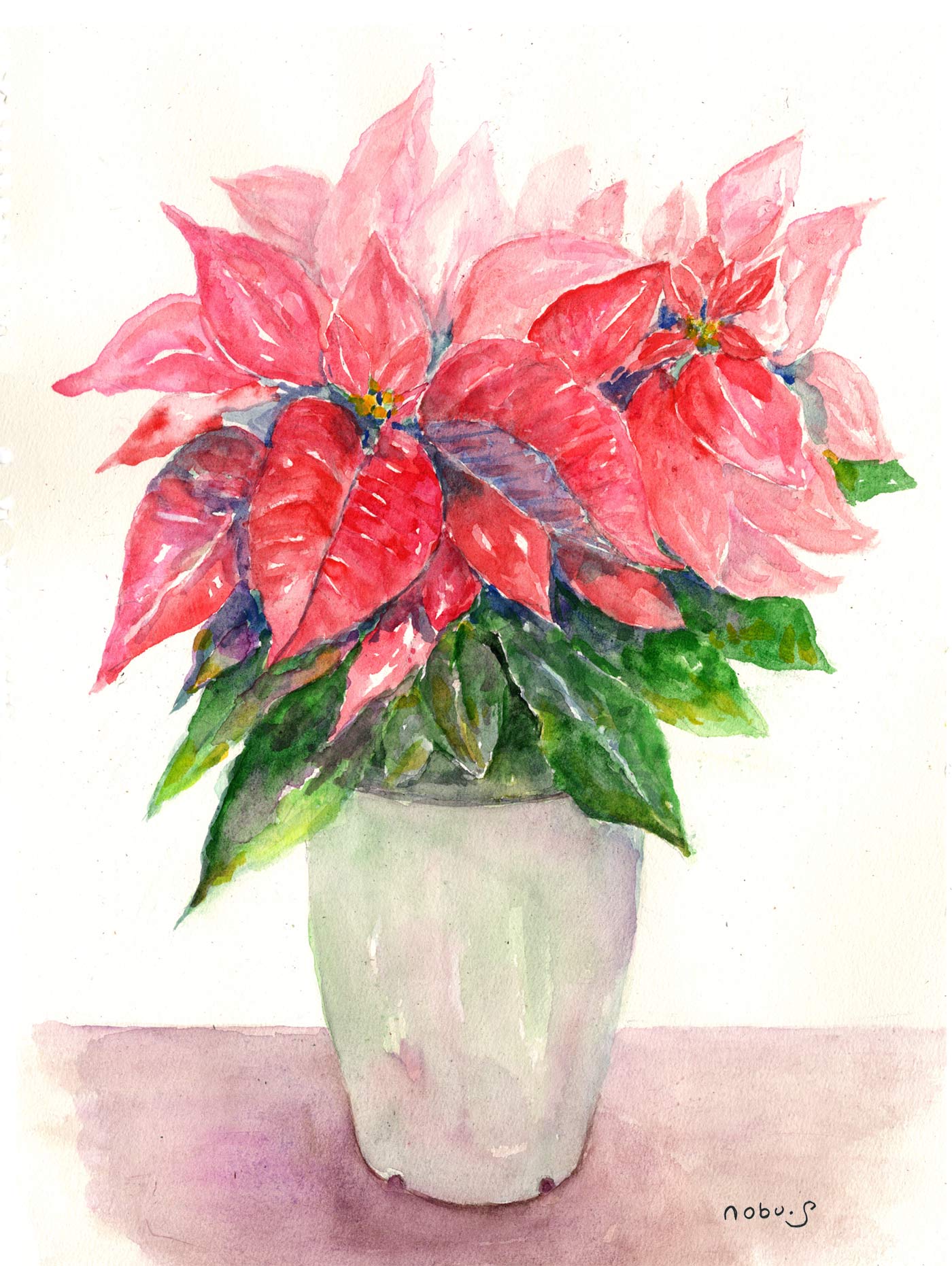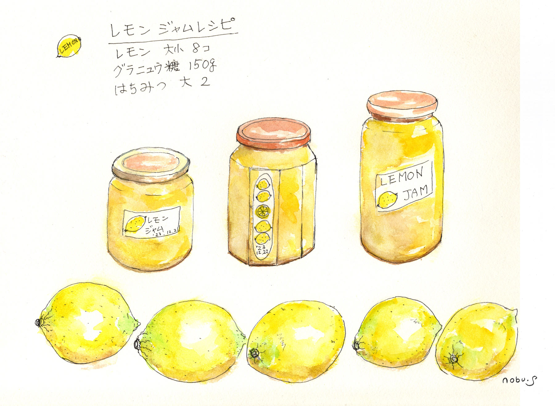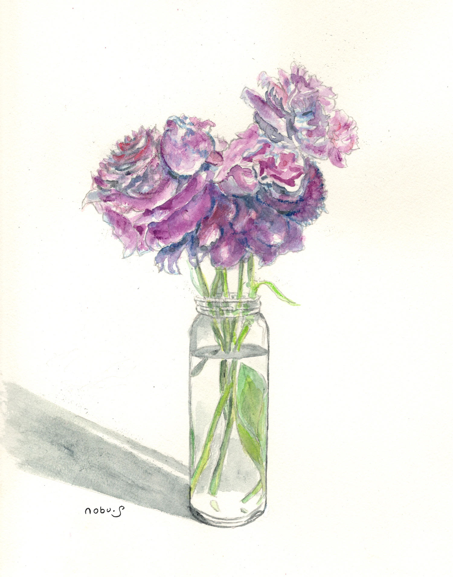 この絵はお友達が枝付きの柿を持って来てくれたので描いてみました。