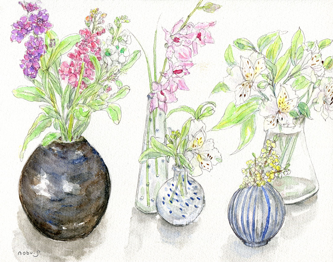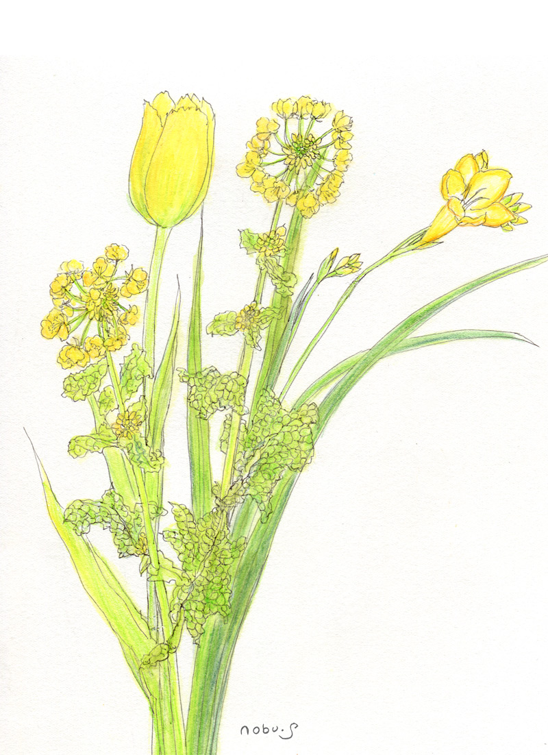 今日は姪が来てお花と果物を供えて最後のお別れをしてくれましたm(._.)m 可愛くて春らしい花なので描いてみました。 明日はお天気がいいといいな〜