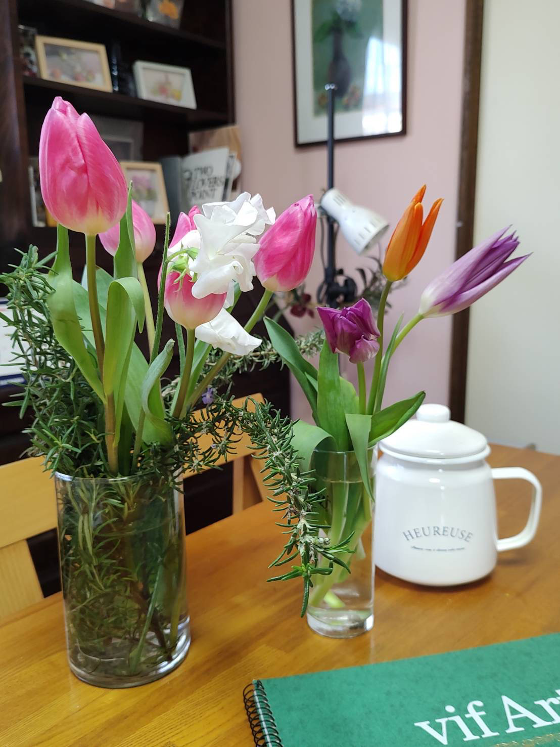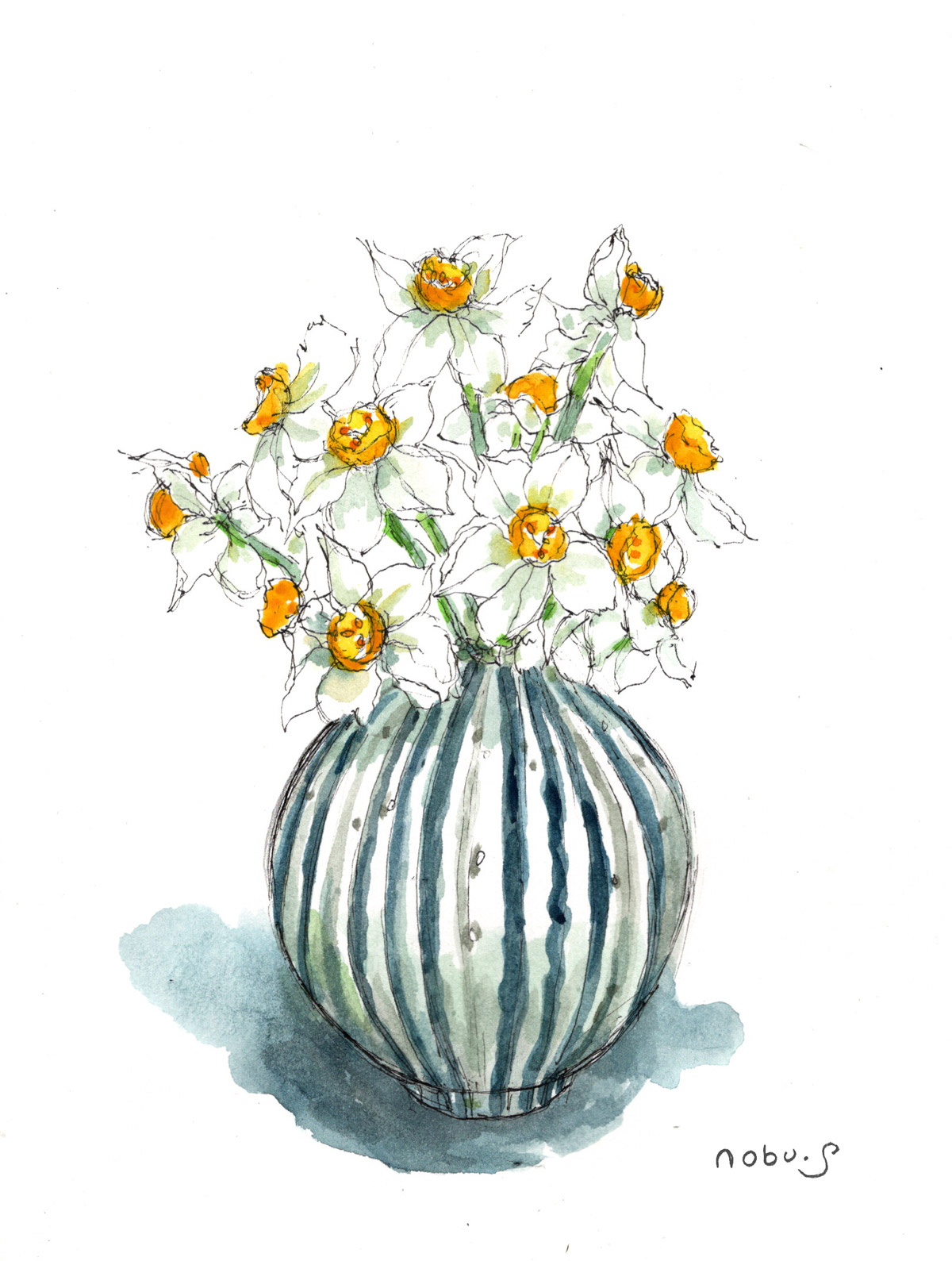 今日は午前中にこの絵を描きまさした。お花屋さんの前を通ったら大好きなチューリップの花を見つけたので買って来ました。何度も描いているのでちょっといつもと違う描き方にしてみました。いつもの描き方の方が綺麗だとは思いますが色々と試していますのでお付き合い下さいね(*^^*)