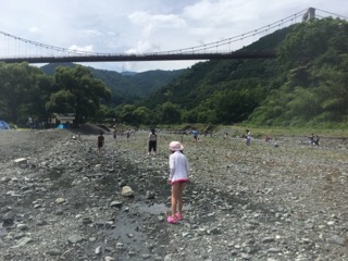 まずはもぐぱく6周年おめでとうございます! ここ数日の絵を見ましたがどれも可愛かったり綺麗だったりでとても癒されました。 今日も曇りの予報だったので、また昨日みたいな天気なのか心配ではありましたが、思い切って秦野の戸川公園に来てみました。着いたらとても蒸し暑くて、日も差して川遊びにはちょうどで、早速お弁当を食べて子供達は水着に着替えておたまじゃくしを探し始めました^_^ バケツを持って来るのを忘れてしまい、お弁当を持って来たケースにたくさんのおたまじゃくしを入れて2人ともご満悦な様子。 遊具とか、大きな吊り橋もあるのですが、今日は川遊びだけで帰ることになりそうです。 |