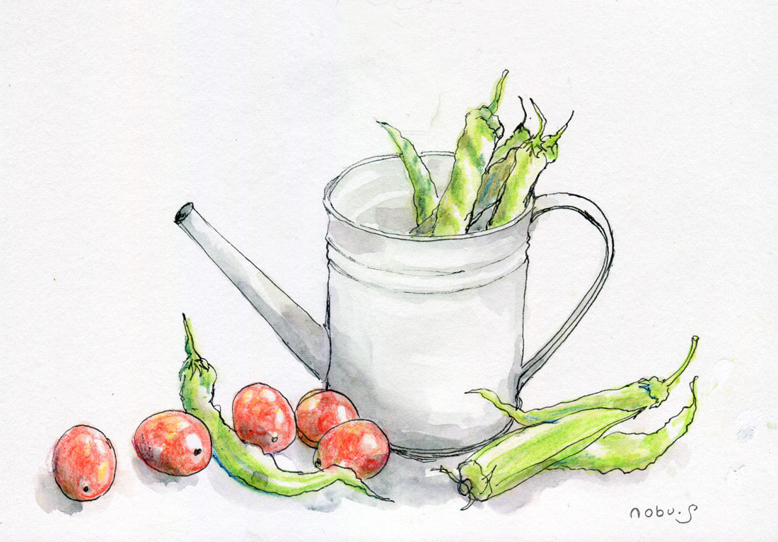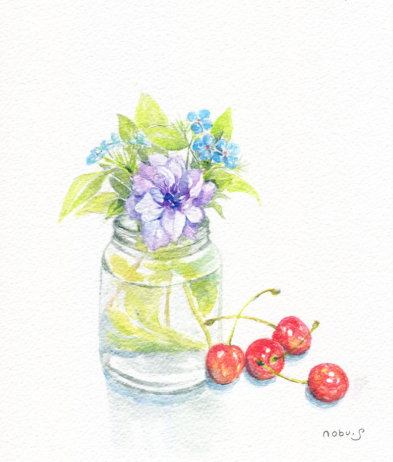 今日はさくらんぼがしかも佐藤錦がスーパーで安く売っていたので早速買ってきました!いつも高くて諦めていたさくらんぼなので沢山描きました(*^^*)時間がかかりましたがいい感じに出来ました(^_^)v [さくらんぼ]水彩画 |