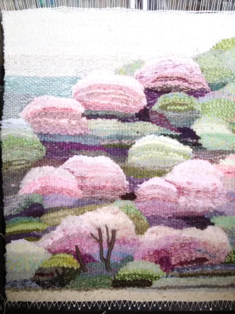 こんにちは〜木立ちの素敵な作品は、以前にも拝見し、手のこんだウィービングに驚いたものです。今回の作品は、桜山の風景を絵画の様に仕上げるのですね! ワクワクします。楽しみ〜