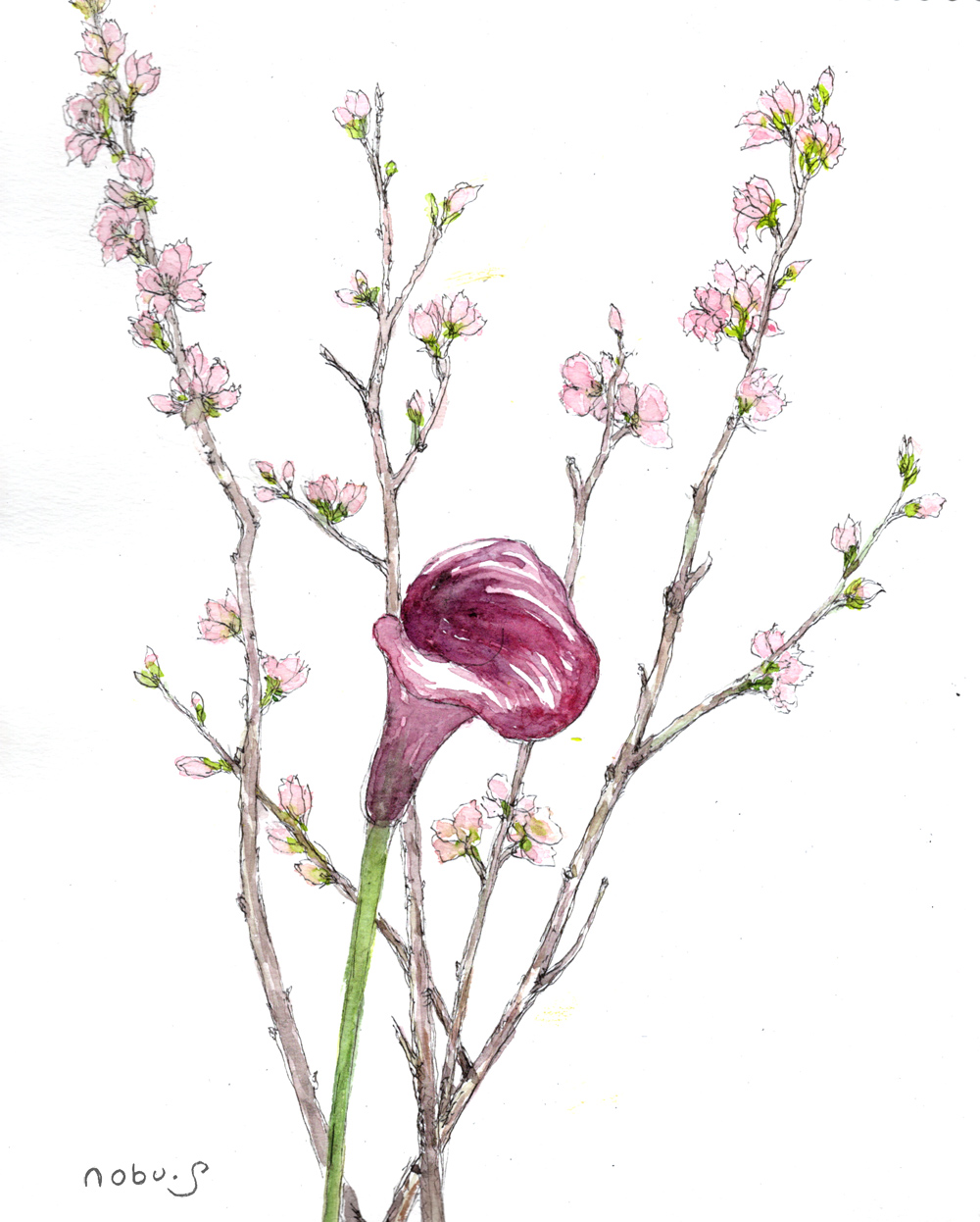 この桜は啓翁桜で昨日お花屋さんで見つけました。
