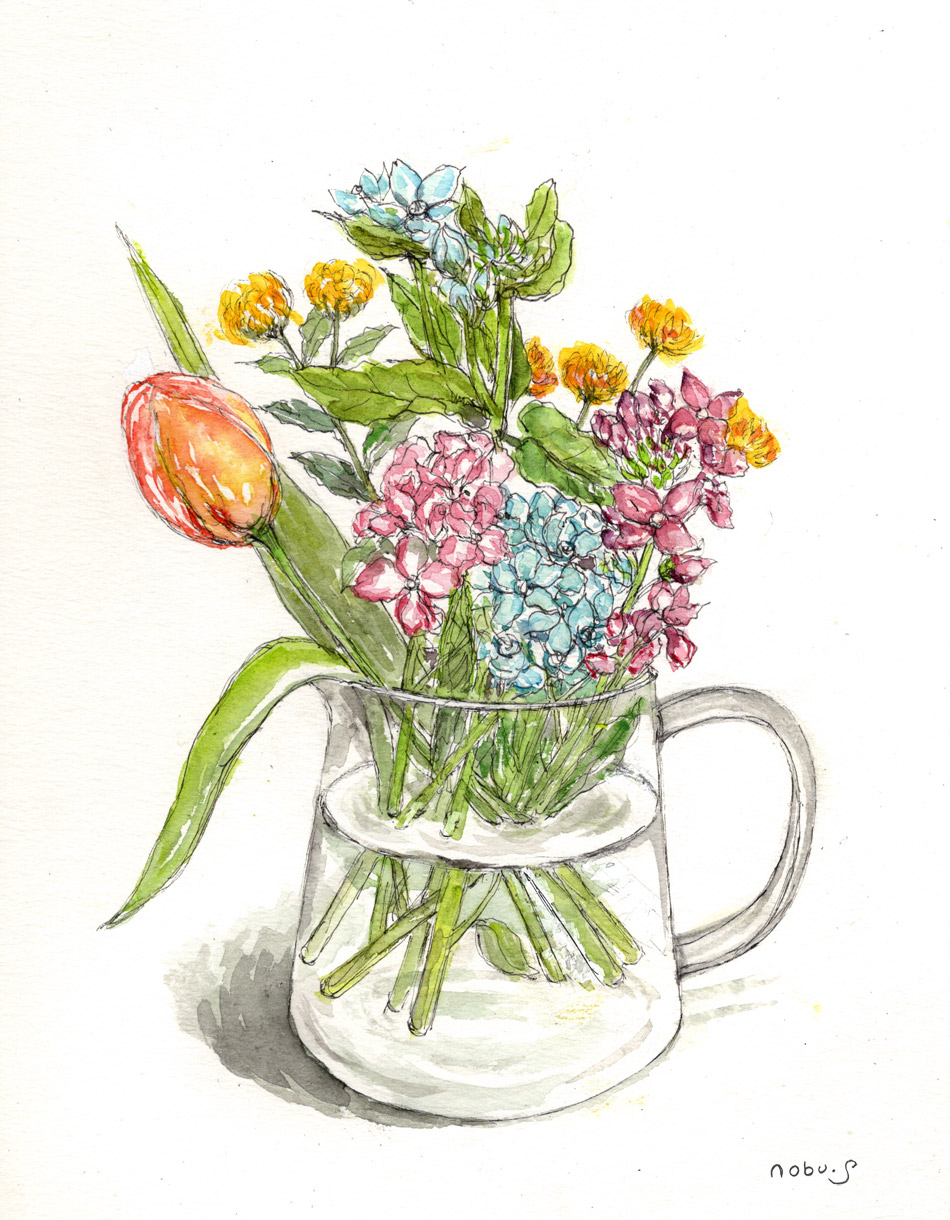 明日はチューリップとブルースターを描く予定なので又みて下さいね(*^^*)