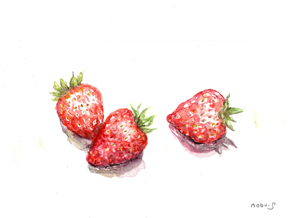 今日はイチゴの絵をupしました。昨晩から描いていたのですが仕上がらず今朝になりました。イチゴの描き方は色々と試しているのですが中々気にいったようには行かないです(ToT)又描きますね。では行って来ます(^_^)/~