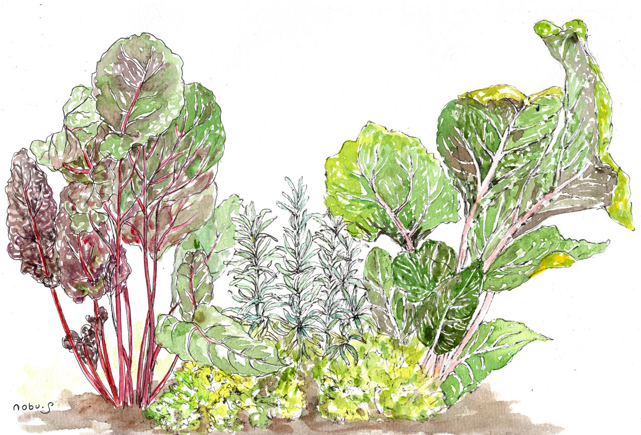 赤い茎の葉はスイスチャードで、スープに入れると赤くなって可愛いです。ローズマリーも大きくなって、お茶にしたり、鶏肉を焼く時に使います(*^^)vベビーリーフも収穫しても又伸びてくれるので助かります。まだ他にも狭い場所に色々と植えてます。私のささやかな楽しみです