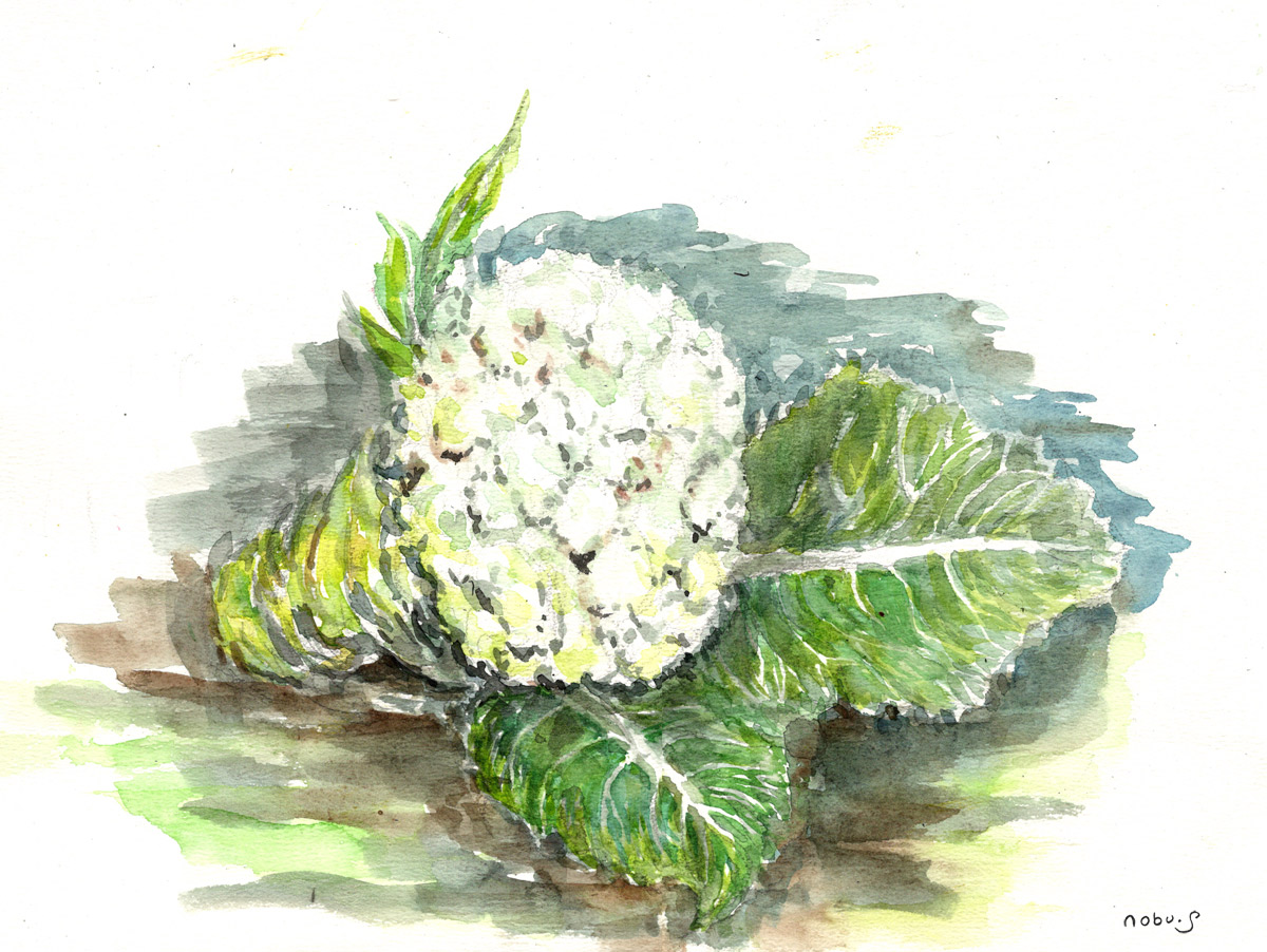 今日は家のプランターで採れたカリフラワーを描きました。