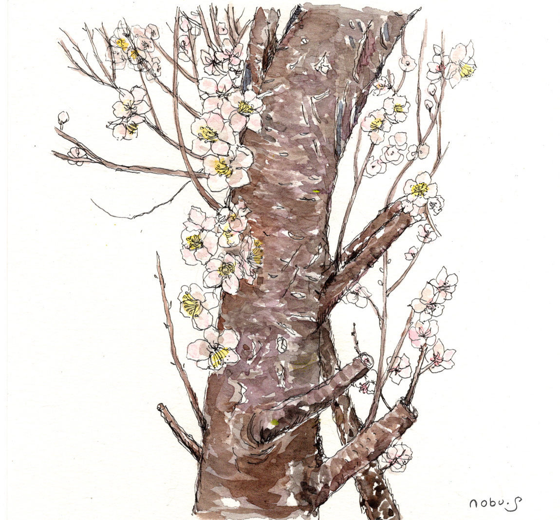 今日はやっと絵を描く気になったので家の近くの梅の木の写真を撮って描きました。早咲きの梅はすっかり終わってしまいましたが、遅咲きの梅が綺麗に咲いています。