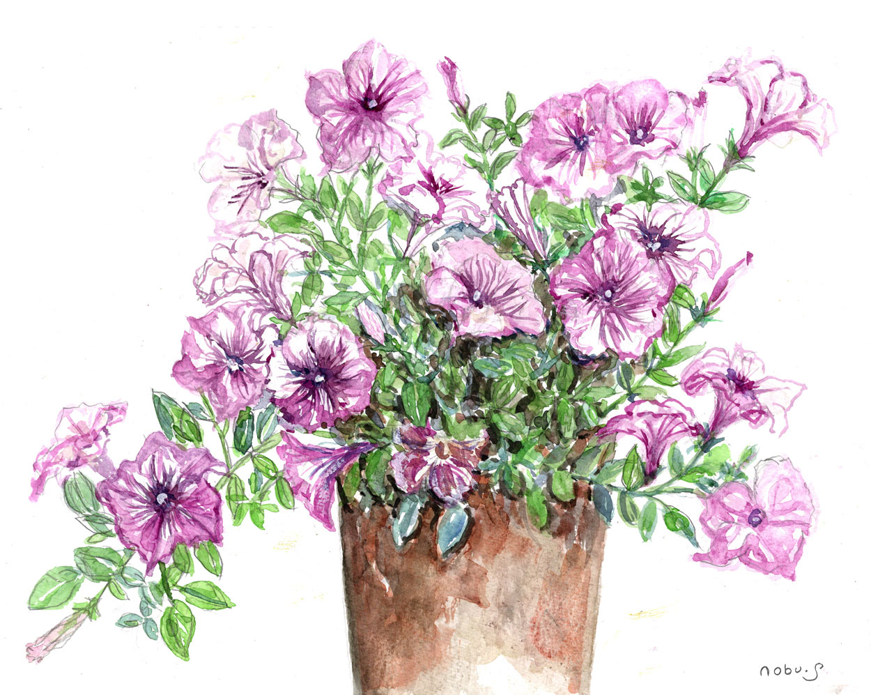 今日は昨日から描いていたペチュニアを午前中に仕上げてupしました(*^^*)