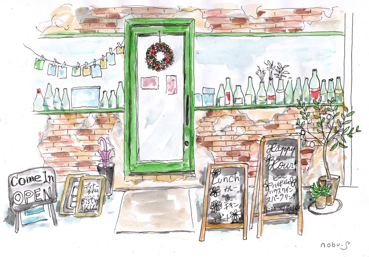 今日の絵は先日行ったイタリアンレストランの入り口です。