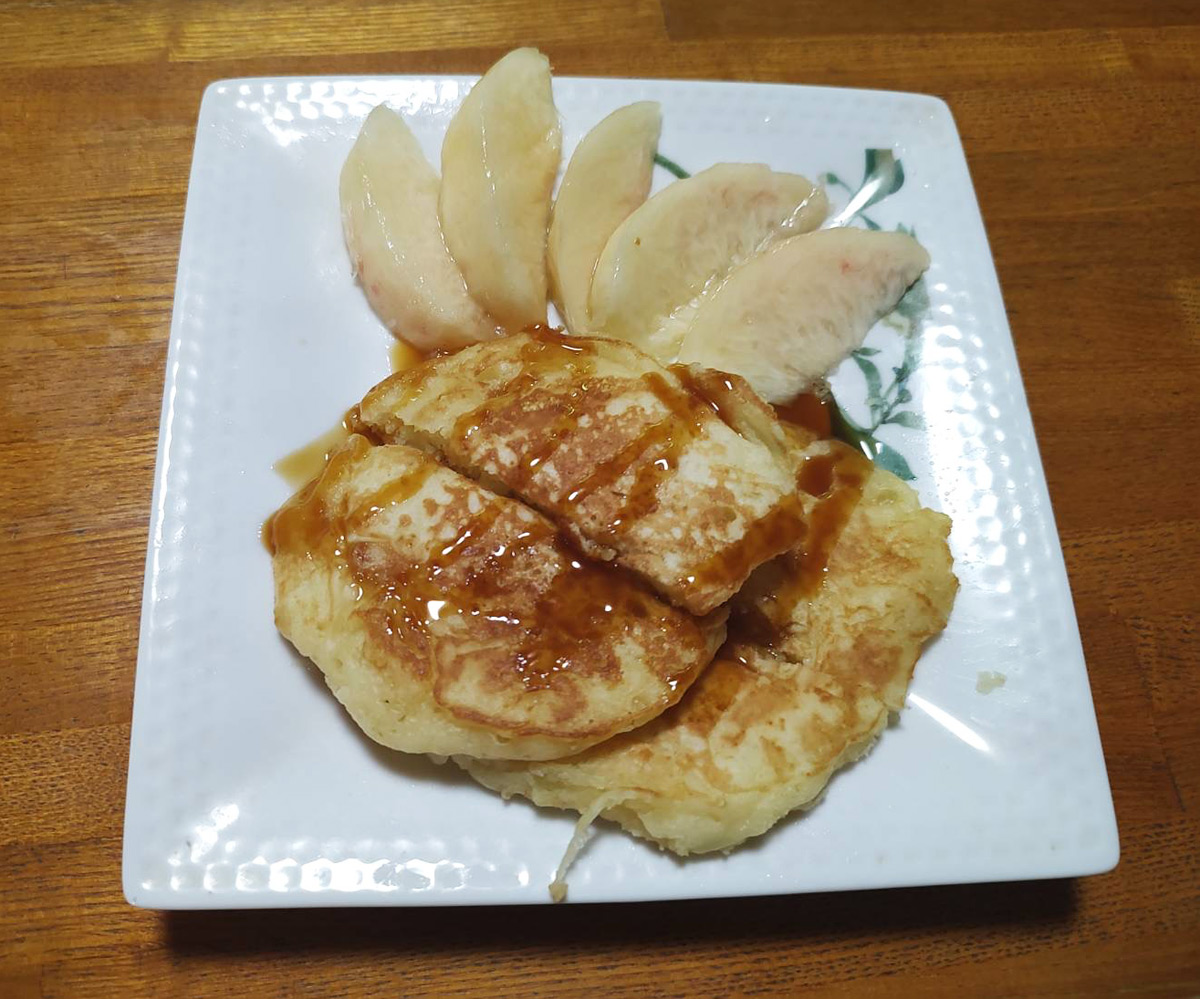 桃も添えてキャラメルソースをかけたら孫は大喜びでした(^_^)v