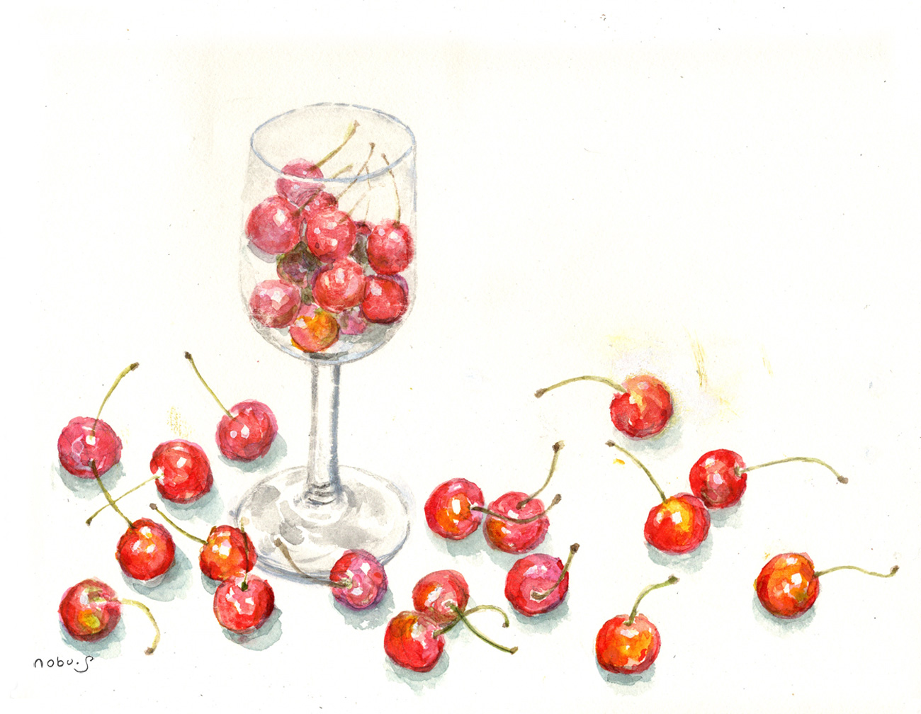 描いてる時は分からないのですが、こうして見るとサクランボ描き過ぎました( ´ー`)フゥー...1パック全部並べておもしろがってコロコロ描いちゃいました(*´∀`*)