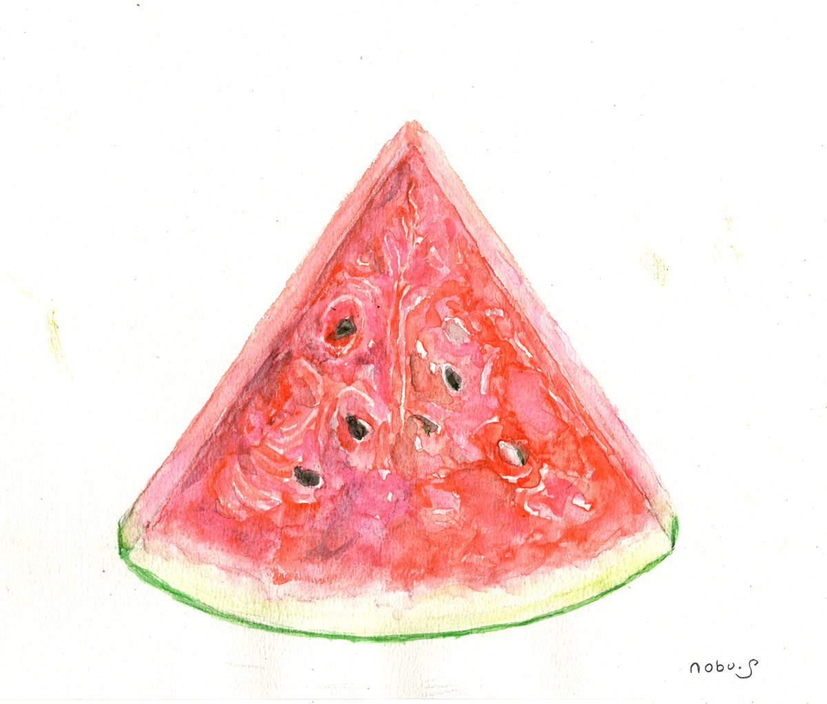 今日は花の絵が完成しなかったので、お昼に食べた一切れのスイカを描きました。