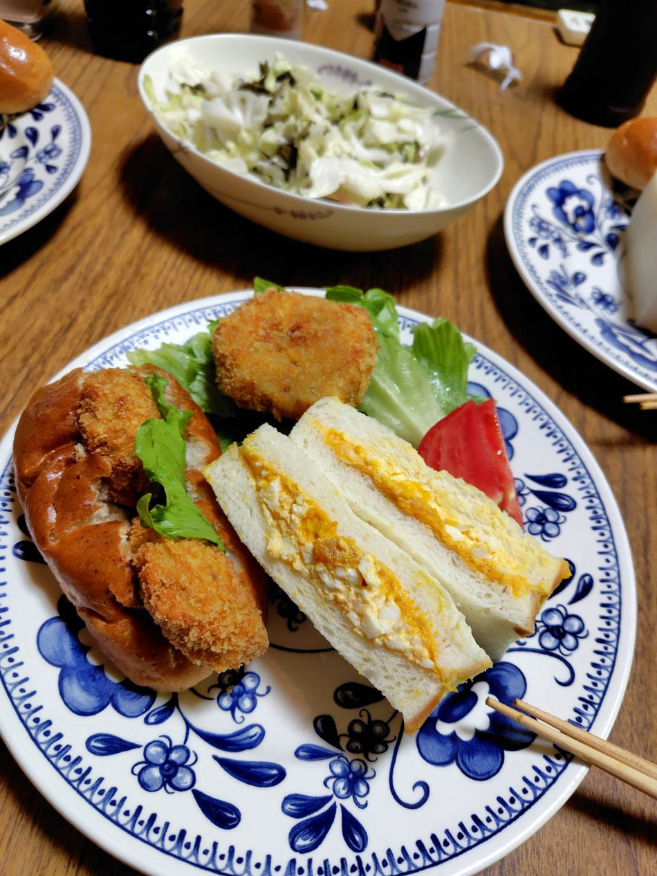 今日は昨日のお絵描き会のランチの写真です。玉子とカボチャのサラダのサンドイッチとコロッケです。皆さんに喜んで貰えて作った甲斐があります(^_^)v