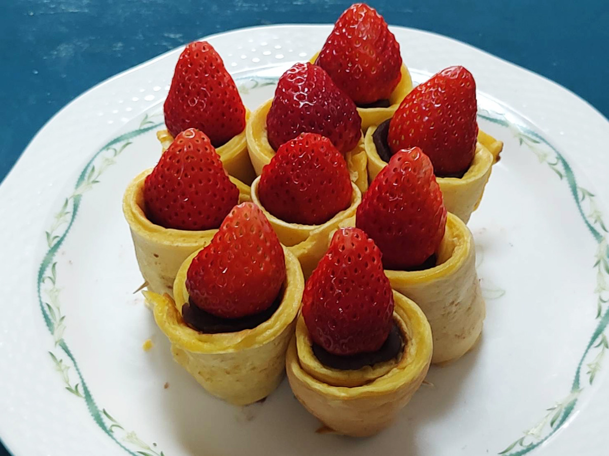 今日はプールに行く前に定番の餡巻きを作りました。苺をのせると一気に春らしくなりました。
