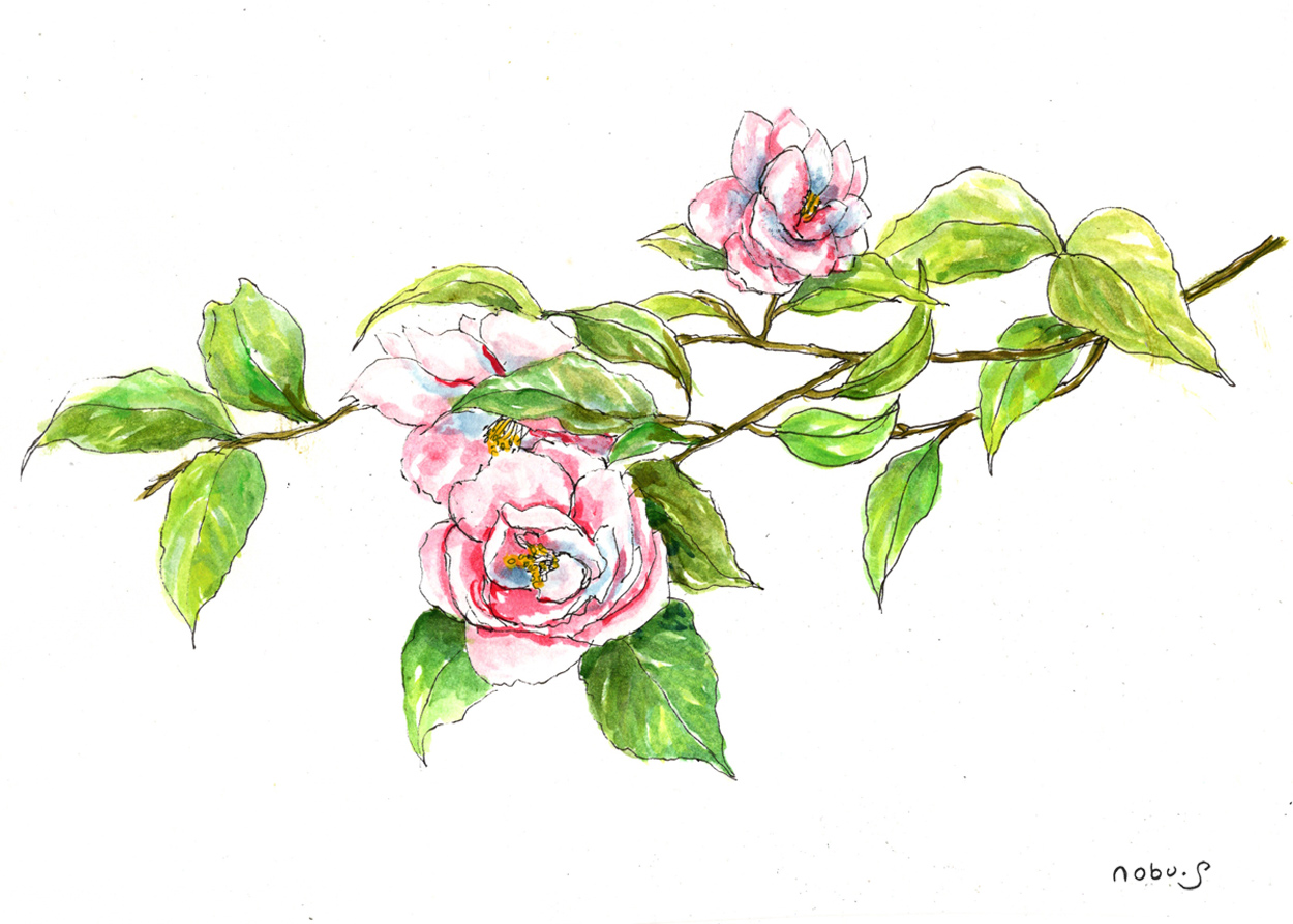 その晩は息子が泊まったので翌朝近くの神社に初詣に行き、それから横浜まで行って福袋を買って美味しい物を食べてのんびり出来ました。昨日はまだ片付けが終わってなかったので、又掃除してました。絵を描くモードに中々ならなくて今日やっと描きました。近くに咲いていた椿を写真を撮って描きました。