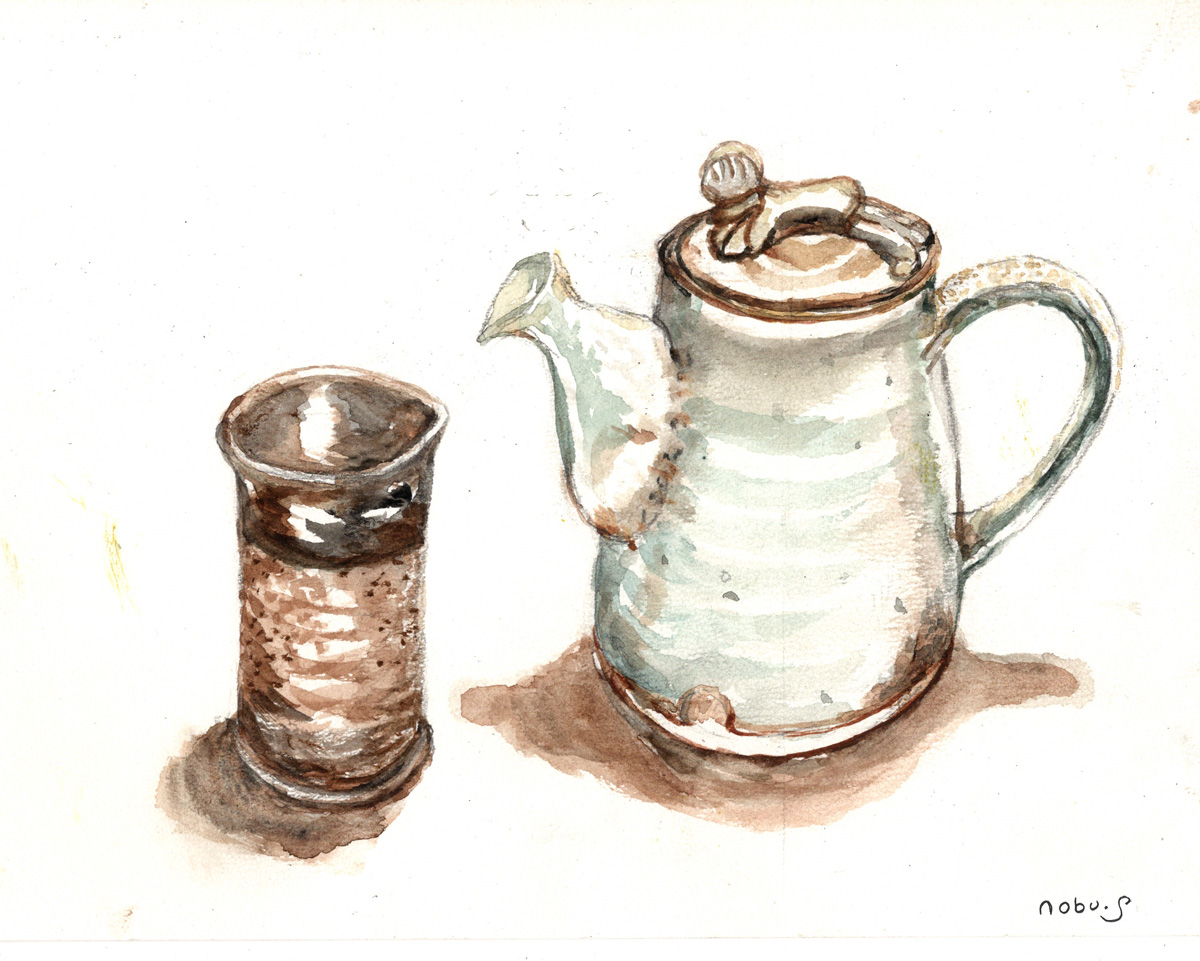 この絵は知り合いの陶芸家で湯村京子さんのさくひんです。