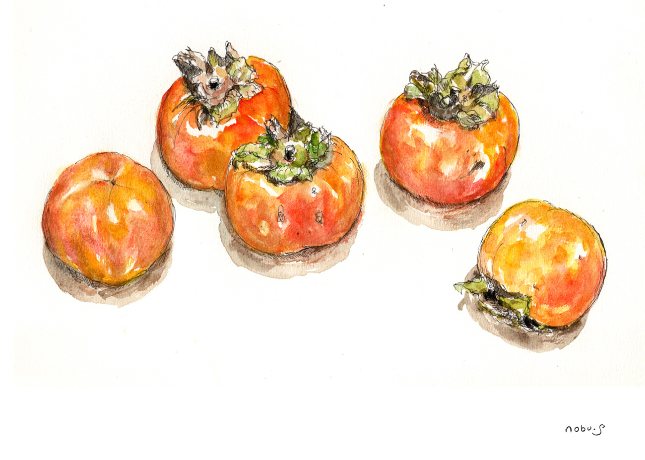 次郎柿  (ペン画水彩)