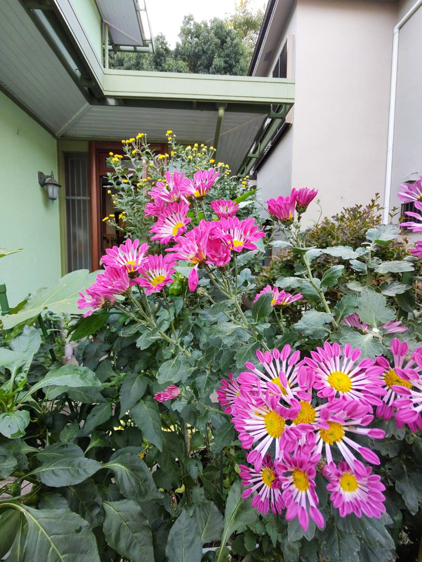 玄関先の菊が満開になりました。かわいい菊でしょ(*^^*)これから黄色の小菊も咲きます。夜には絵を描くつもりですがその元気があるか自信はありません描けたら明日upしますね。では又(^o^)