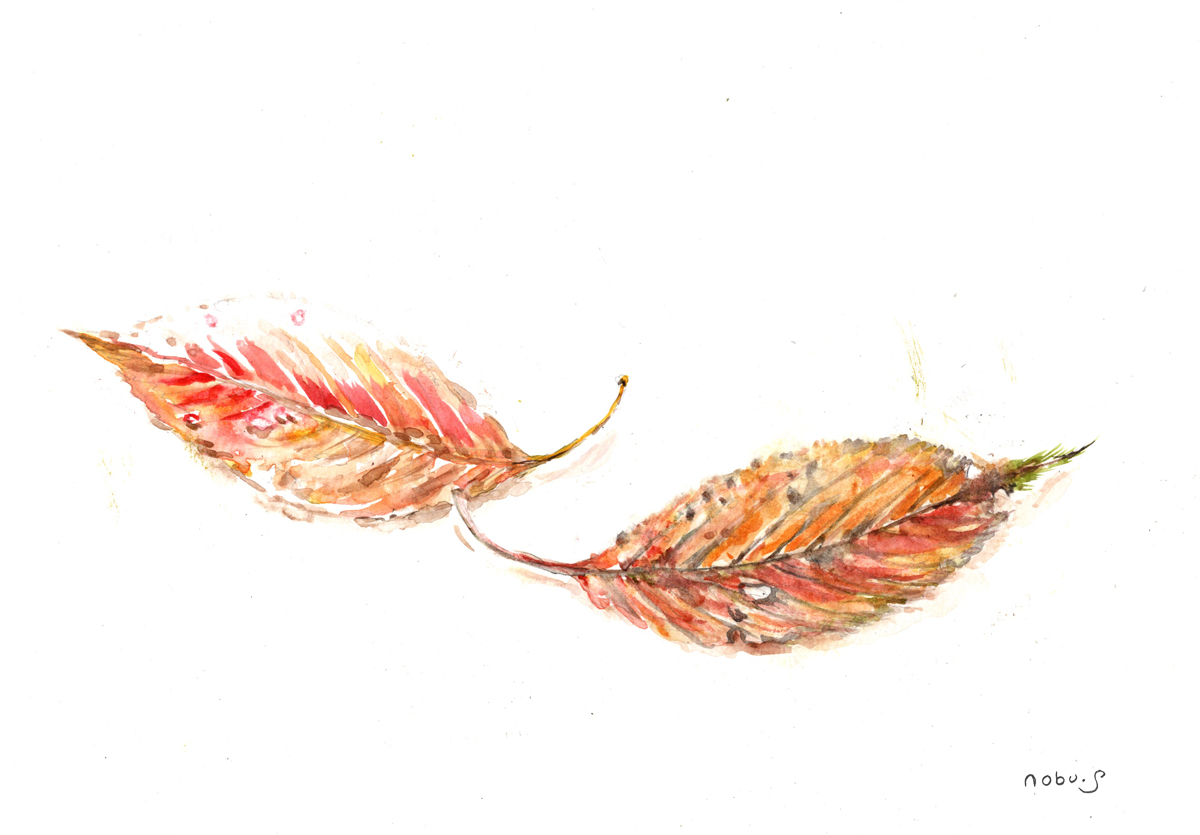 この絵はプールの前で拾った桜の葉を描きました。