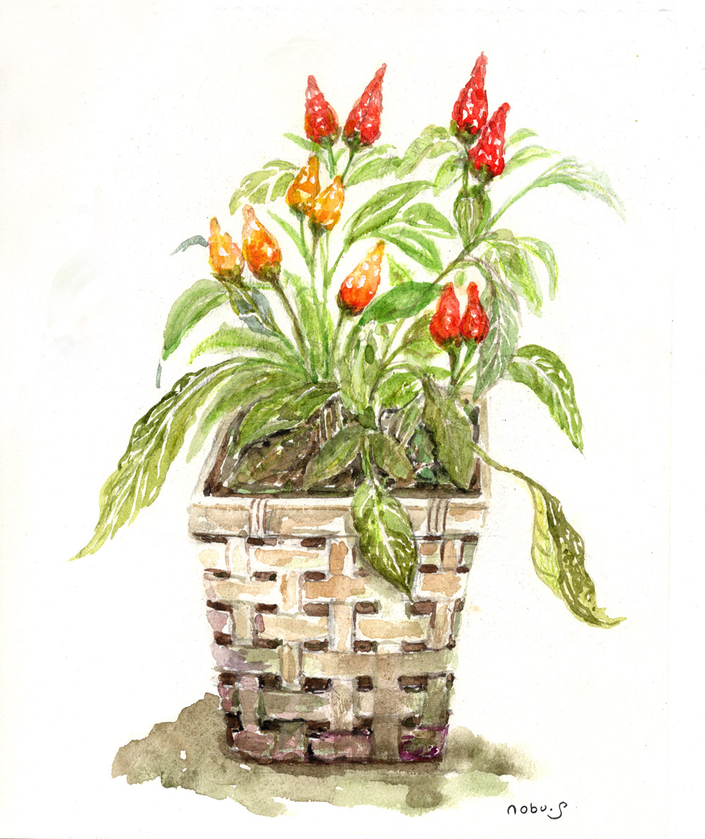 唐辛子の籠  (水彩画)