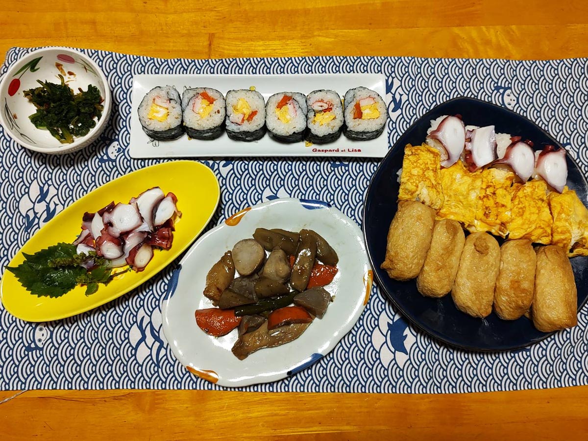 今日は仕事が忙しくて絵を描けなかったので夕飯の写真です。ドジャース優勝のお祝いですが、買い物に行けなかったのであり合わせで作りました。
