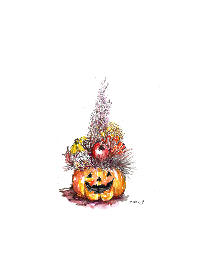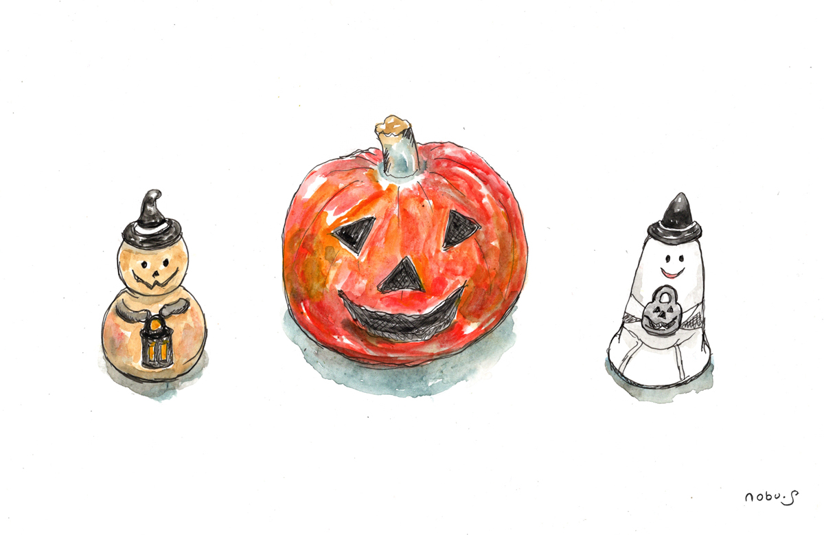 ハロウィンの置き物(ペン画水彩)