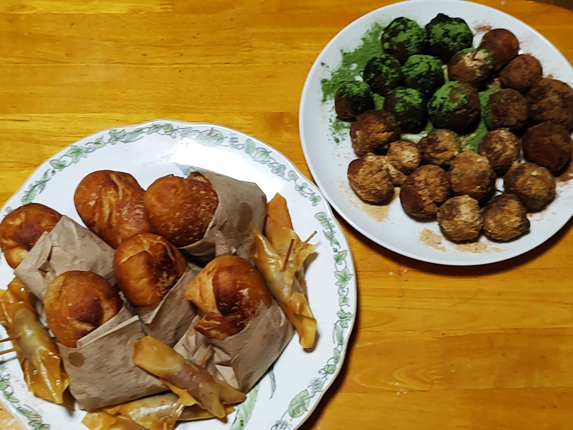 孫たちも生地を丸めたり、抹茶やきな粉をつけたり楽しそうでした。