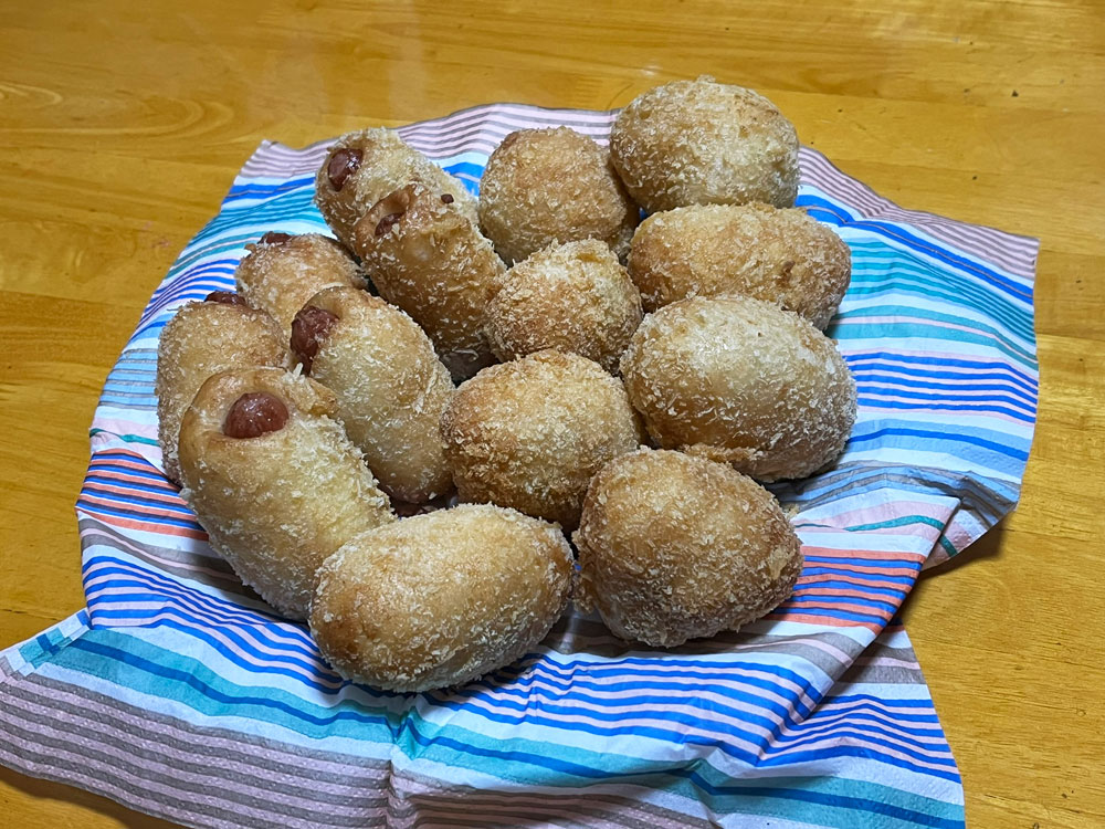 孫たちと先週から約束していたドーナツ作り、甘いドーナツにソーセージカレードーナツ。