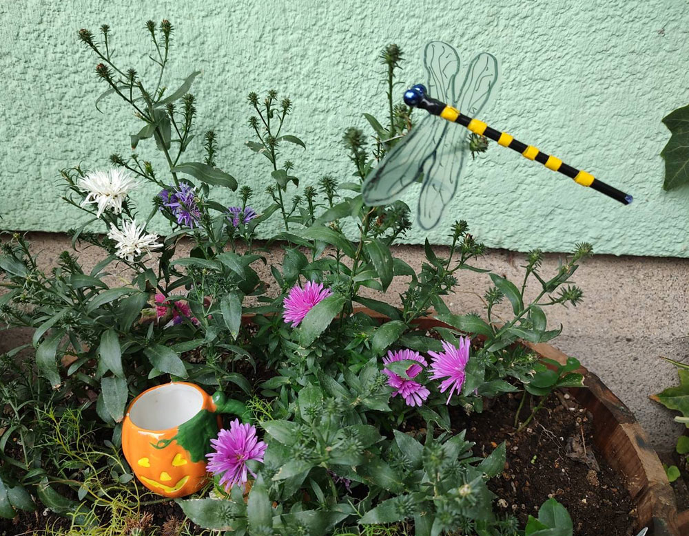 昨日お絵描き会に来た人が作って来てくれたオニヤンマがリアルなので写真UPしました。このオニヤンマを草木に付けておくとスズメバチが来ないとか。毎回のように色々作って持って来てくれるので楽しませてもらっています(*^^*)