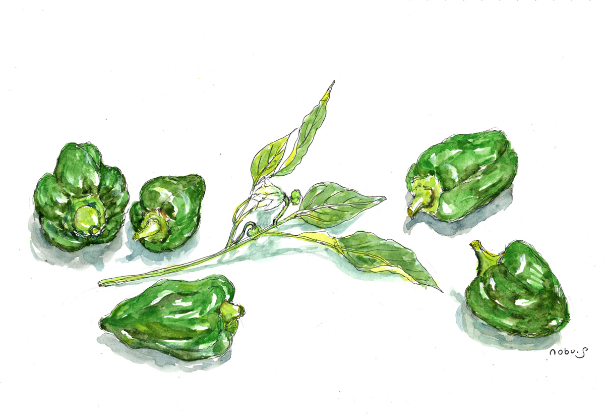 野菜のプランターには、春に植えた苗ですが未だに小さ目のピーマンが沢山成っています。