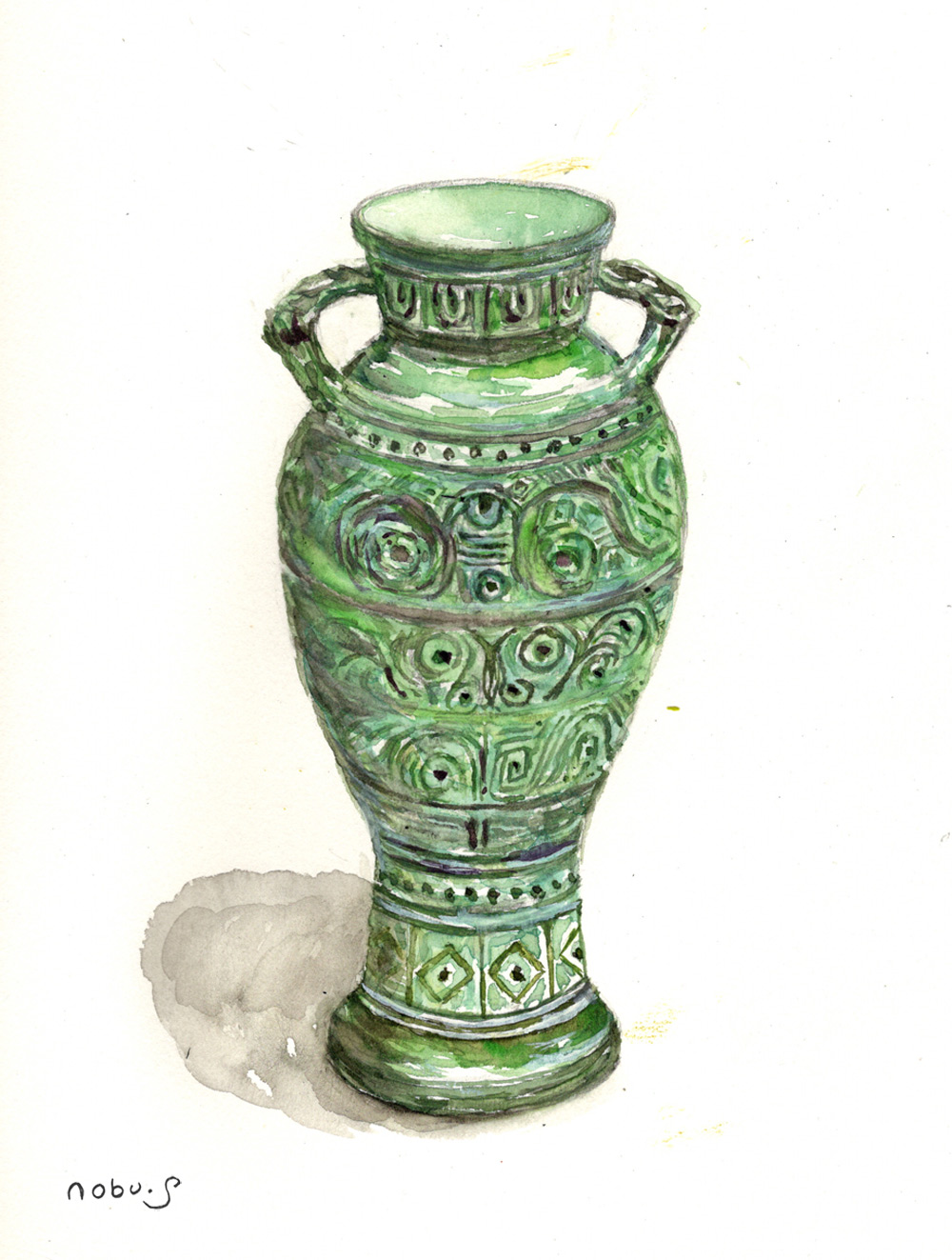 青銅の花瓶 (水彩画)