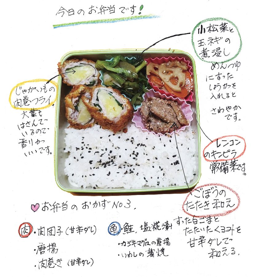 まだまだ調味料は沢山ありますが少しスッキリして使いやすくなりました。野菜も傷みやすいので色々作って冷蔵庫に保存しました。レンコンとカボチャと人参の揚げ浸しとたたきごぼうと小松菜の煮浸しと肉巻きを作ってお弁当を作りました。このところあまり食べられなくて痩せてしまった夫に毎日お昼はお弁当を作っています。お弁当にすると何とか食べてくれるのでほっとします。