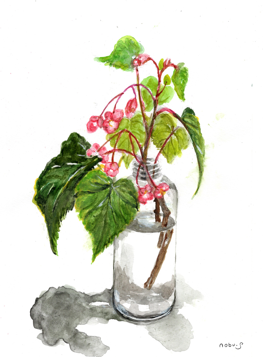 摘んで来てガラスの瓶に挿して描き出しましたがデッサンを描いたらもう7時過ぎてしまったので急いで朝食の仕度、それからお弁当の準備。今日は常備菜がなくなってしまったので冷蔵庫にある野菜で煮物をつくりました。後はベーコンと玉ねぎのオムレツ、今日はいつもより手抜きです。