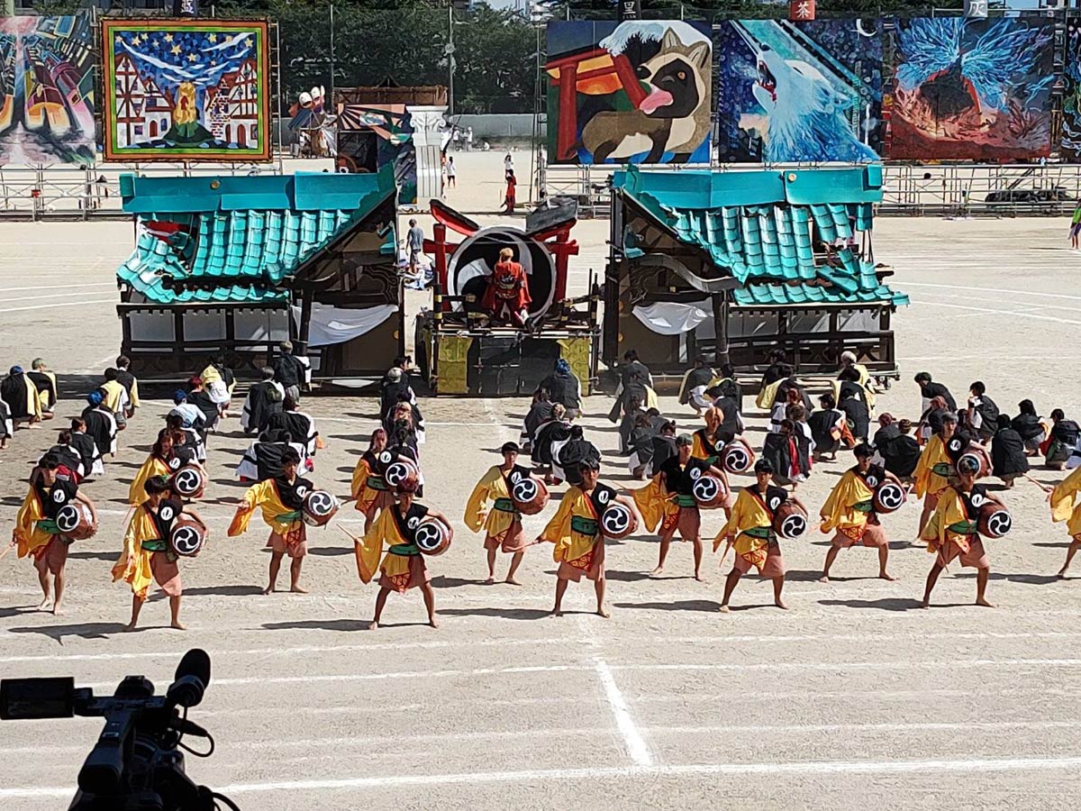 今年は強風で前日にバックボードが倒れてしまったり、当日は演技中に大道具が風にあおられて壊れてしまったり、でももう一度組み立てて最後に演技をやり終えて感動の拍手で終わりました。来年もどんな体育祭になるか今から楽しみです。
