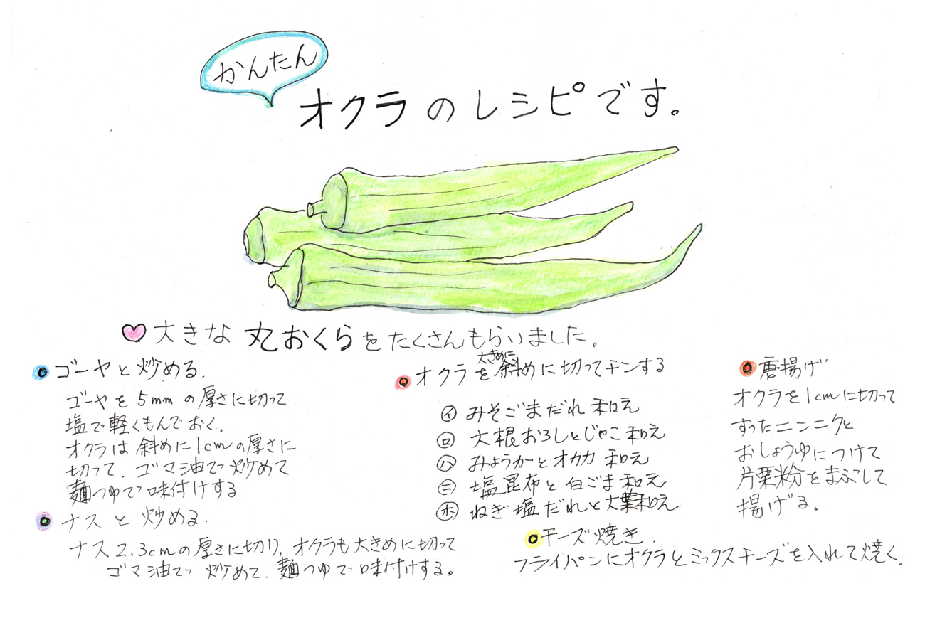 このオクラは金曜日にテニスの仲間に沢山もらったので、ネットで調べて書きました。いつも作ってる煮浸しとか和え物の他に唐揚げやチーズ焼きは知らなかったのでやってみました。美味しくてカンタンだから是非試して見て下さいね。
