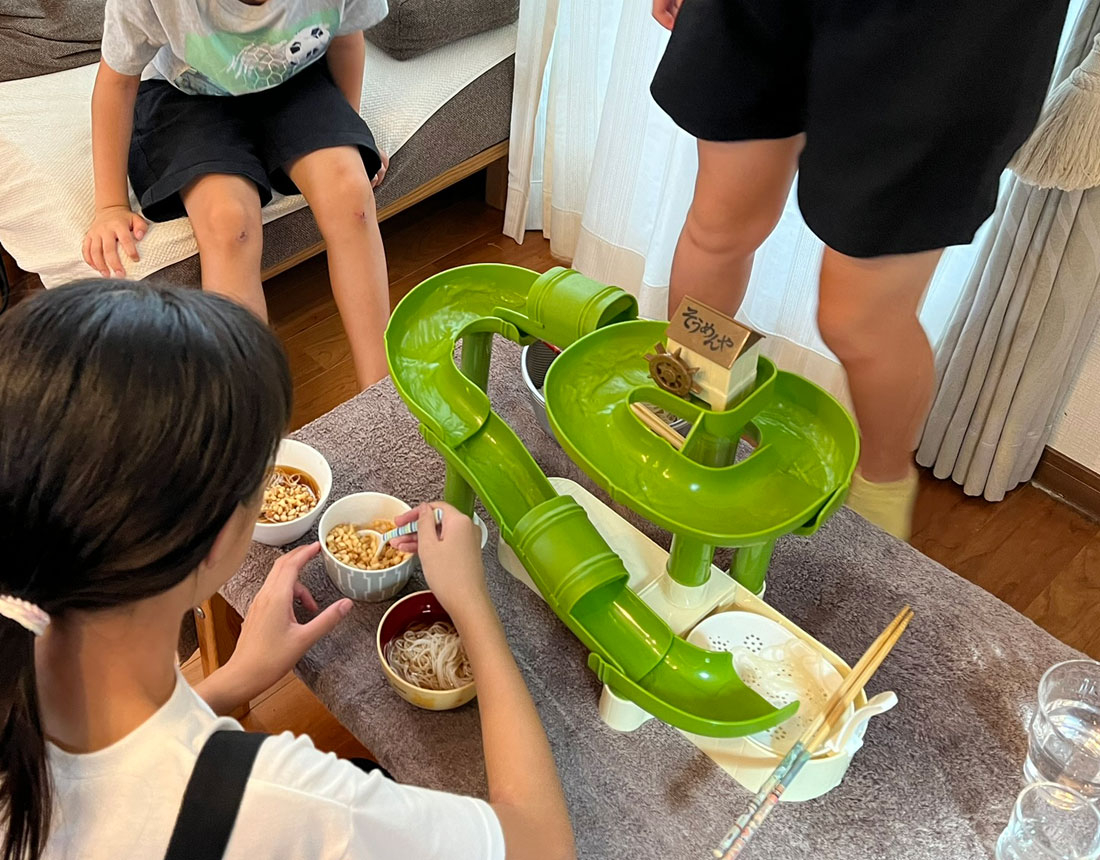 昨日は家族が娘の家に集まり、流しそうめんと餃子パーティーをしました。孫が小さい頃は川で遊んだりバーベキューをしましたが、だんだんみんなが集まるのが難しいので家の中で集まる事が多くなりました。でも子供たちは1日中ゲームやカードで楽しそうにしていました。