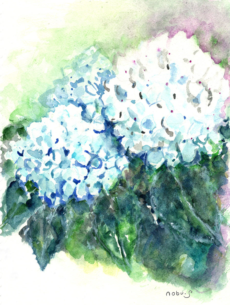 毎年のこさんのアジサイ見てますが、色々な描き方にチャレンジしていてすごいですね。今日馬車道のオシャレなお花屋さんで花びらがたくさん層になっている珍しいアジサイがあって可愛かったです。名前見たのに忘れちゃった。。。思い出したらまた報告しますね(笑)