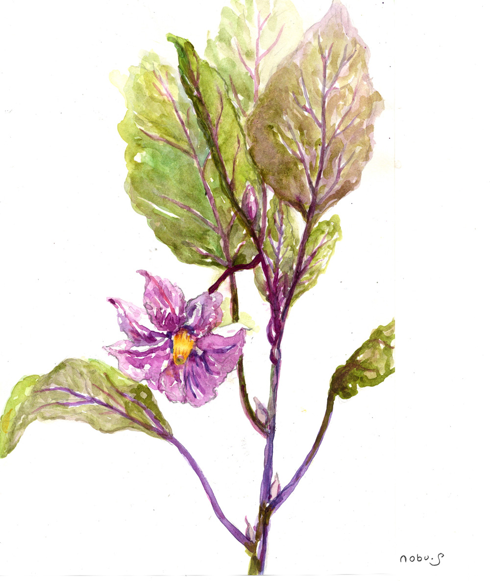 茄子の花がキレイなので描いてみました。朝デッサンしてお昼から色を塗ったのですが