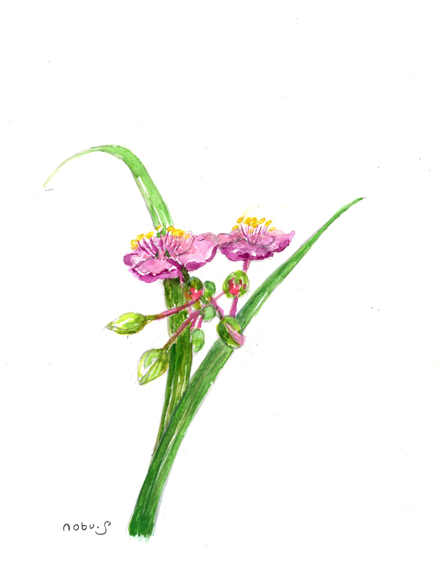 今日は裏庭に咲いてるムラサキツユクサを描きました。
