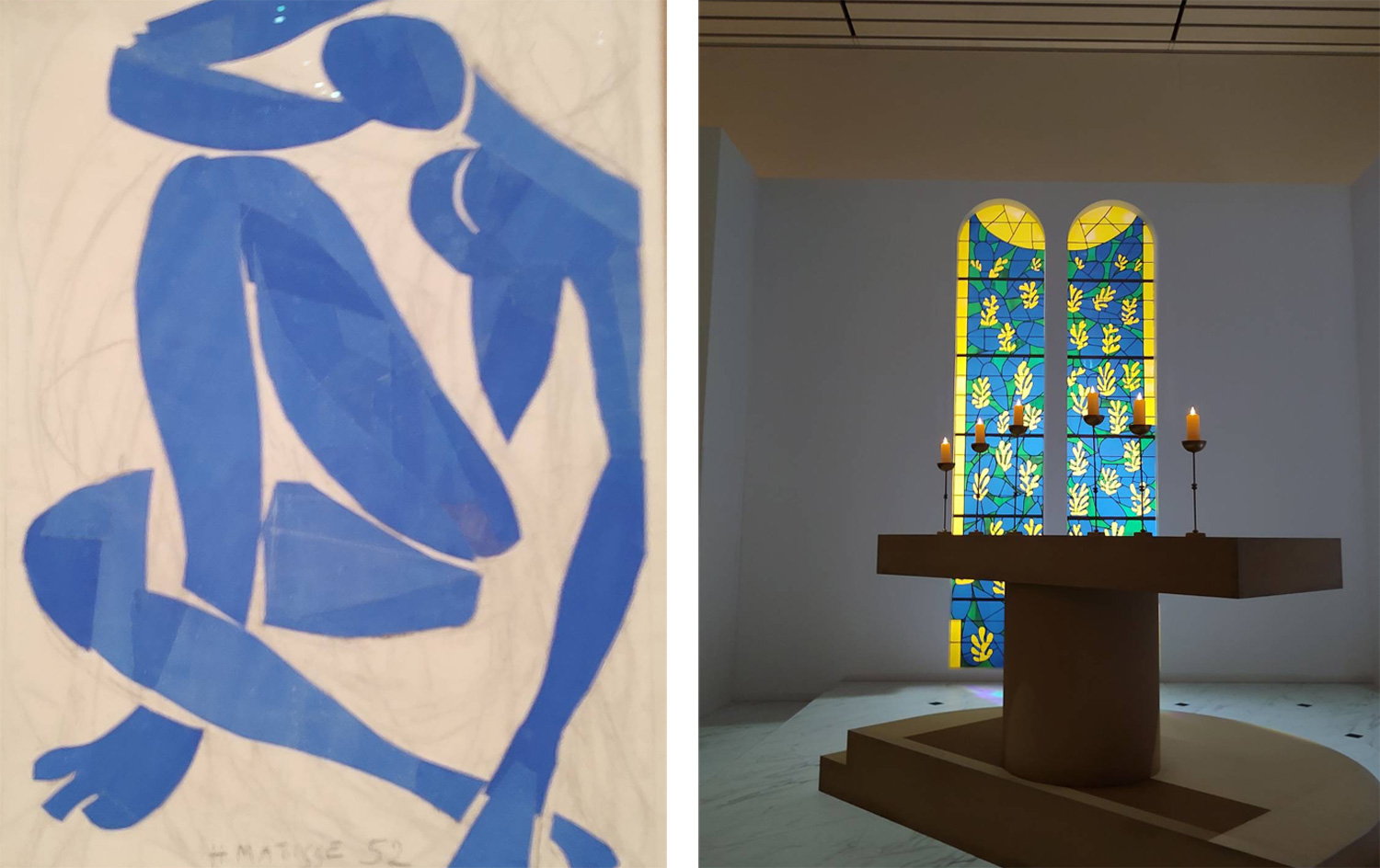 昨日行ったマティス展は素晴らしかったです。前にも見た事はありますが、今回一番驚いたのがマティスが設計から内装まで関わったロザリオ礼拝堂の内部を原寸大で再現していてステンドグラスから差し込む光まで再現していたところです。
