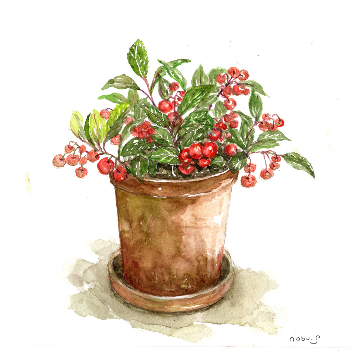 チェッカーベリー (水彩画)