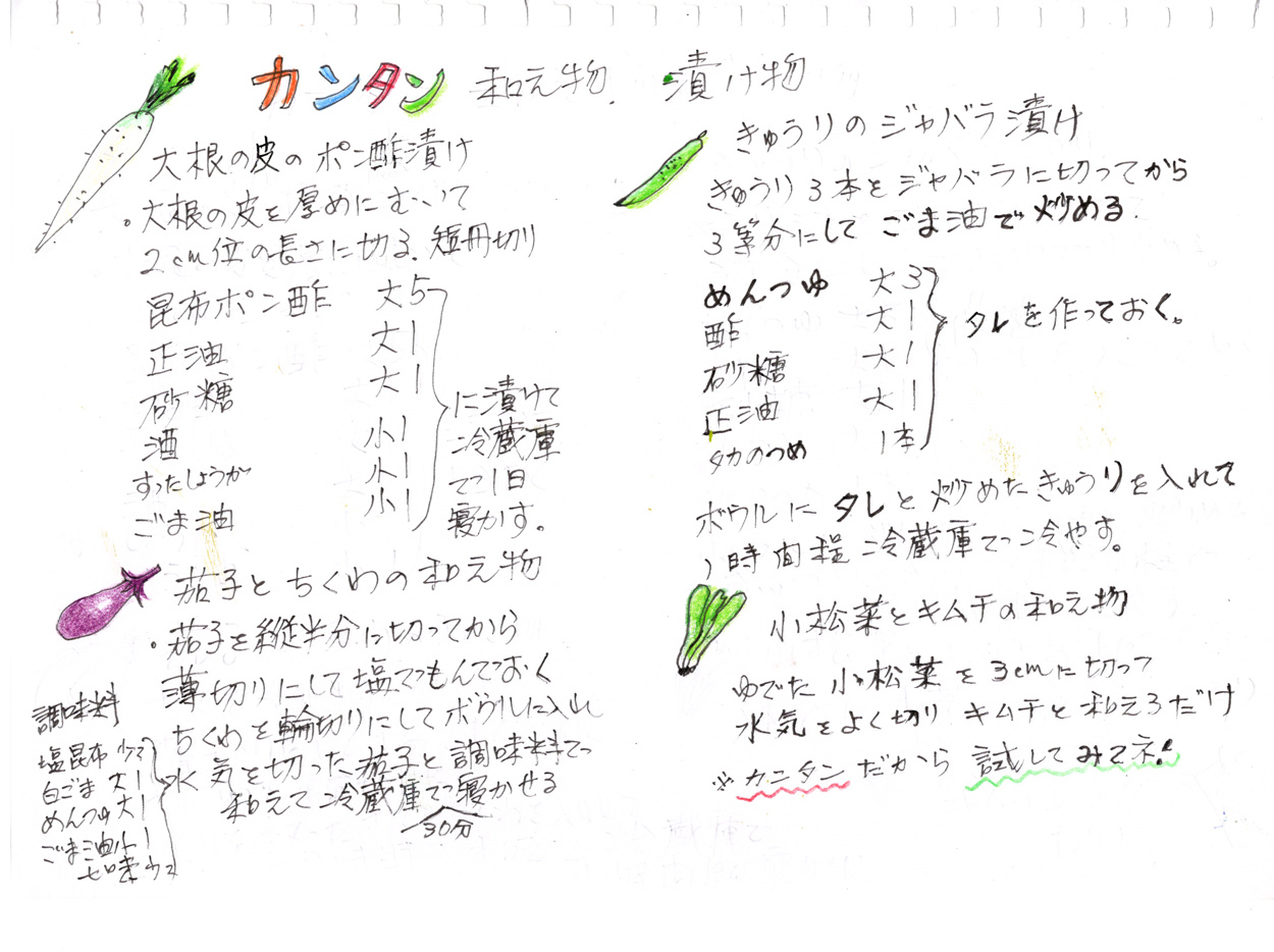 今日はお絵描き会です。皆さん一生懸命なのでどんどん上達しています。 スーミーさんも来たら上手くなりますよ(^^) みょうがのレシピは適当なので塩気が足りなかったら足して下さいね^_^ 又レシピのせるので見て下さい(._.) |
